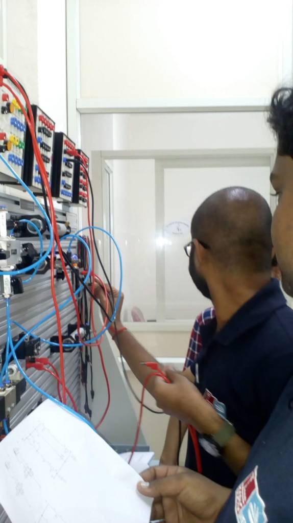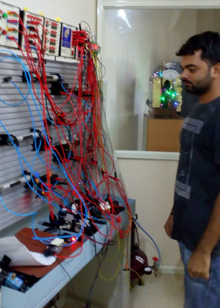 Course Contents: Multiple-actuator electro-pneumatic circuit development using Cascade method and Shift register method with software simulation and practical.