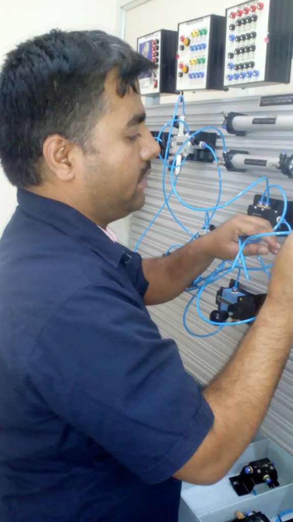 Ramakrishne Gowda is a senior faculty member at the Fluidsys Training Centre in Bangalore. He conducts training courses both within India and internationally. With over thirty years of experience in mechanical engineering, he has organised and conducted training programs at the National Skill Training Institute (NSTI) in Bangalore, Hyderabad, and Chennai. He is an expert in pneumatics, hydraulics, electro-pneumatics, and automobiles.